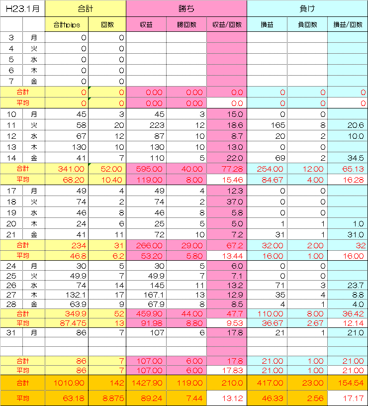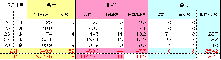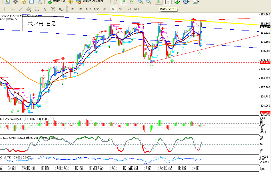 2/4(金)14:01 131.63 売 0.2枚17:15 131.95 ストップ -30pips 0.1枚20:23 131.53 決済 +10pips 0.1枚 ポン円 5Mポンド円 日足 ポンド円 4Hポンド円 1H 雇用統計後にエントリー寝ている間にリミットにヒットしました2/4 22:30 131.47 買2/5 01:29 131.77 リミット +302月 1週の集計結果